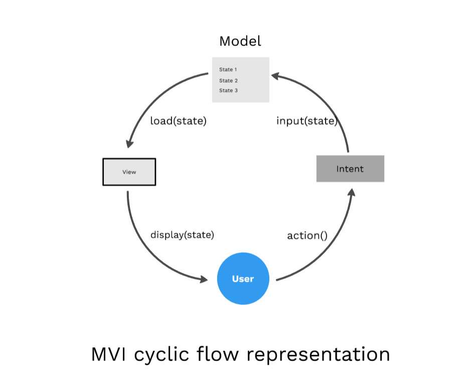 - MVI는 MVP, MVVM 같은 다른 패턴과 유사하지만 의도(Intent)와 상태(State)라는 두 가지 새로운 개념이 도입되었습니다.
