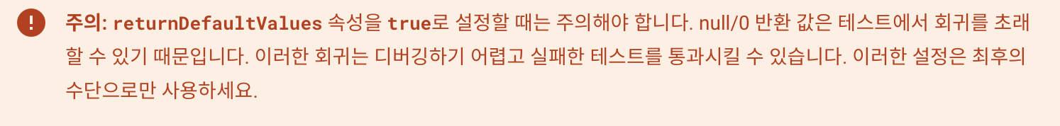 - 해당 오류가 테스트에 문제가 되면 프로젝트의 최상위 수준 build.gradle 파일에 다음 구성을 추가하여 메서드가 대신 null 또는 0을 반환하도록 동작을 변경할 수 있습니다.